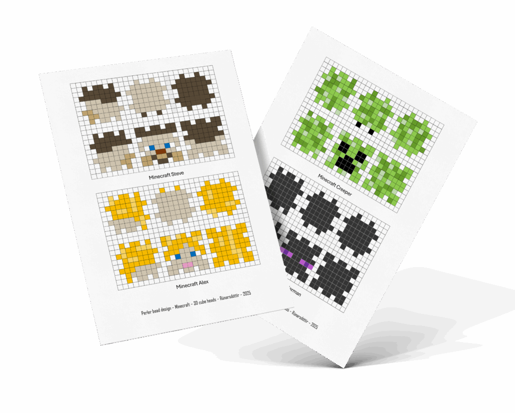 Hefur þú prófað að gera perlukubba? Smelltu á mynd fyrir neðan til að á leiðbeiningar fyrir Minecraft perluhausum, Þú perlar, straujar báðum megin og setur svo saman.