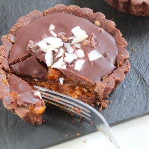 saltkaramellu og súkkulaði tartaletta
